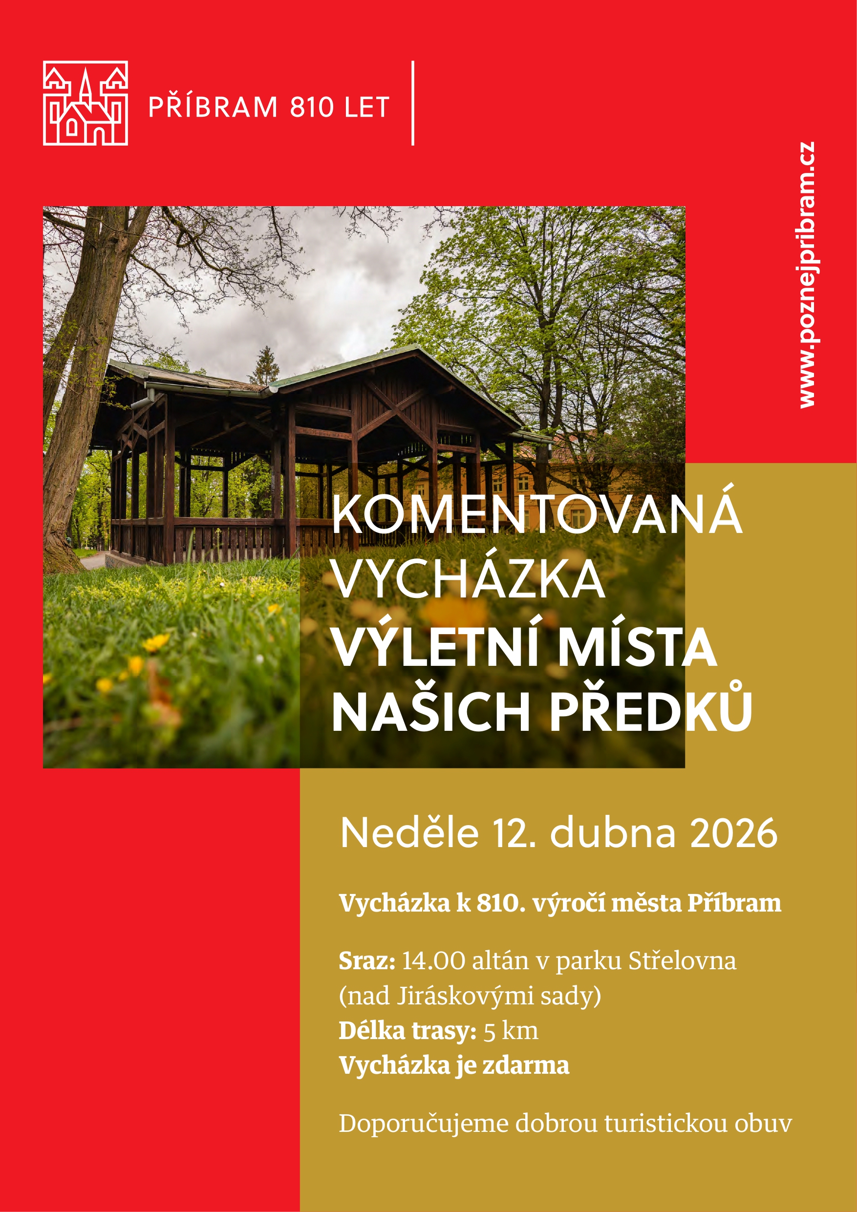 Na neděli 12. dubna je přichystána v pořadí čtvrtá komentovaná vycházka městem, která nás tentokrát zavede na výletní místa našich předků. Sraz účastníků je ve 14 hodin u altánu v parku Střelovna (nad Jiráskovými sady), odkud se spolu s průvodcem vydají na zhruba pětikilometrovou vycházku. Připomínáme, že komentované vycházky pořádané u příležitosti 810. výročí města, jsou pořádány zdarma.